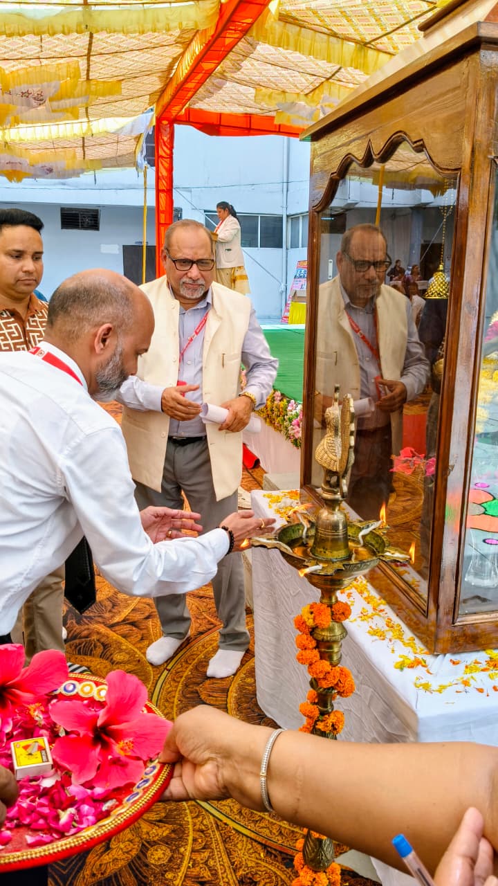 The Lamp Lighting Ceremony was held on 4th October,2025 at SIHER with great enthusiasm and reverence. The event began at 10:00 AM with a Hawan Pooja, invoking divine blessings for peace, prosperity, and success. All dignitaries, faculty members, and students actively participated, creating a spiritual and auspicious beginning to the program.