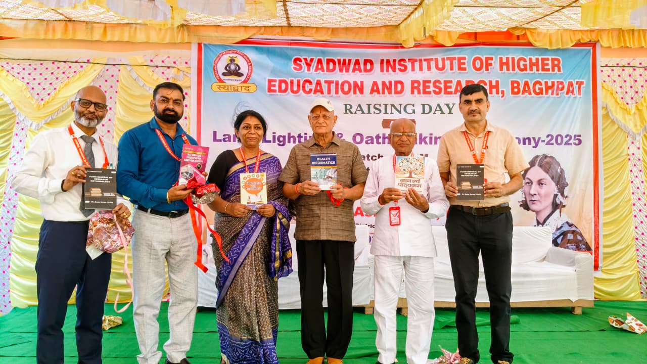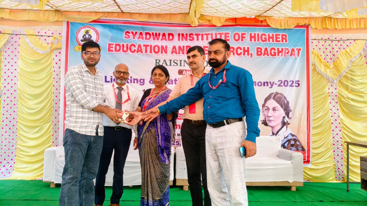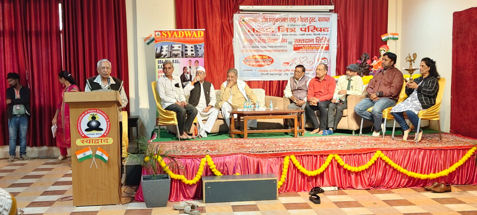 The Syadwad Jain Educational & Social Trust, Baghpat, in collaboration with Tarun Mitra Parishad, successfully organized a Free Divyang Camp and Blood Donation Camp at the campus of Syadwad Institute of Higher Education & Research (SIHER) on 11th November 2025.The event was organized with the support of Rotary Club of Ghaziabad Viraasat in association with Rotary Blood Bank, Noida.The inaugural ceremony was graced by Sh. Abhimanyu Gupta Ji, Sh. Ashok Jain Ji, and Sh. Sihkar Chand Jain Ji, who formally inaugurated both the camps and encouraged participants and volunteers.In the Divyang Camp, a total of 41 differently-abled patients attended with various physical disabilities. Necessary medical assessment and registration were conducted for the provision of artificial limbs, calipers, orthosis (shoes), and hearing aids as per individual requirements.In the Blood Donation Camp, a total of 135 volunteers registered themselves for blood donation. After medical screening, 34 donors were found eligible and successfully donated blood.Both the programs were conducted smoothly under the guidance of the organizing committee and with active participation from staff, students, and community members. The camps received excellent response and appreciation from attendees and local authorities. Overall, the event was a great success, achieving its objective of serving humanity through health and social welfare initiatives.