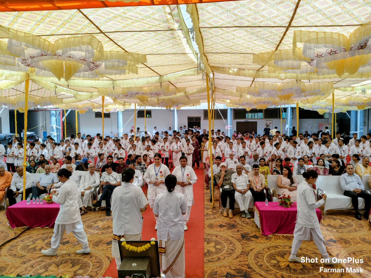 It was a moment of immense honour and spiritual enrichment for Syadwad Institute of Higher Education and Research when Param Pujya Yugal Muni Shri 108 Shivanand Ji Maharaj and Prashmanand Ji Maharaj graciously accepted our invitation and visited the institute on Sunday, 26th October 2025. The entire campus was filled with devotion and positivity as the revered Muni Shri arrived. Faculties and students gathered to listen to his enlightening holy speech, which inspired everyone with messages of peace, discipline, and self-awareness. Muni Shri also performed Aahar Charya, which provided students and staff an opportunity to witness the sacred Jain traditions and learn about the values of simplicity and self-restraint. All present took the blessings of Maharaj Shri with deep reverence. The visit created an atmosphere of spirituality and learning, leaving a lasting impression on everyone’s hearts.