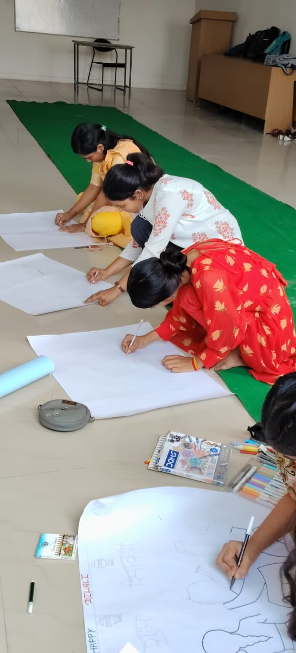 Our campus joyfully celebrated the Diwali Mela, a festival that filled the surroundings with lights, laughter, and creativity. Students, teachers, and staff came together to embrace the true spirit of Diwali — the victory of light over darkness. The event featured exciting activities such as Rangoli Making, Mehndi Designing, Stall Decoration, and Poster Making. The entire celebration reflected unity, joy, and the cultural charm of this beautiful festival.