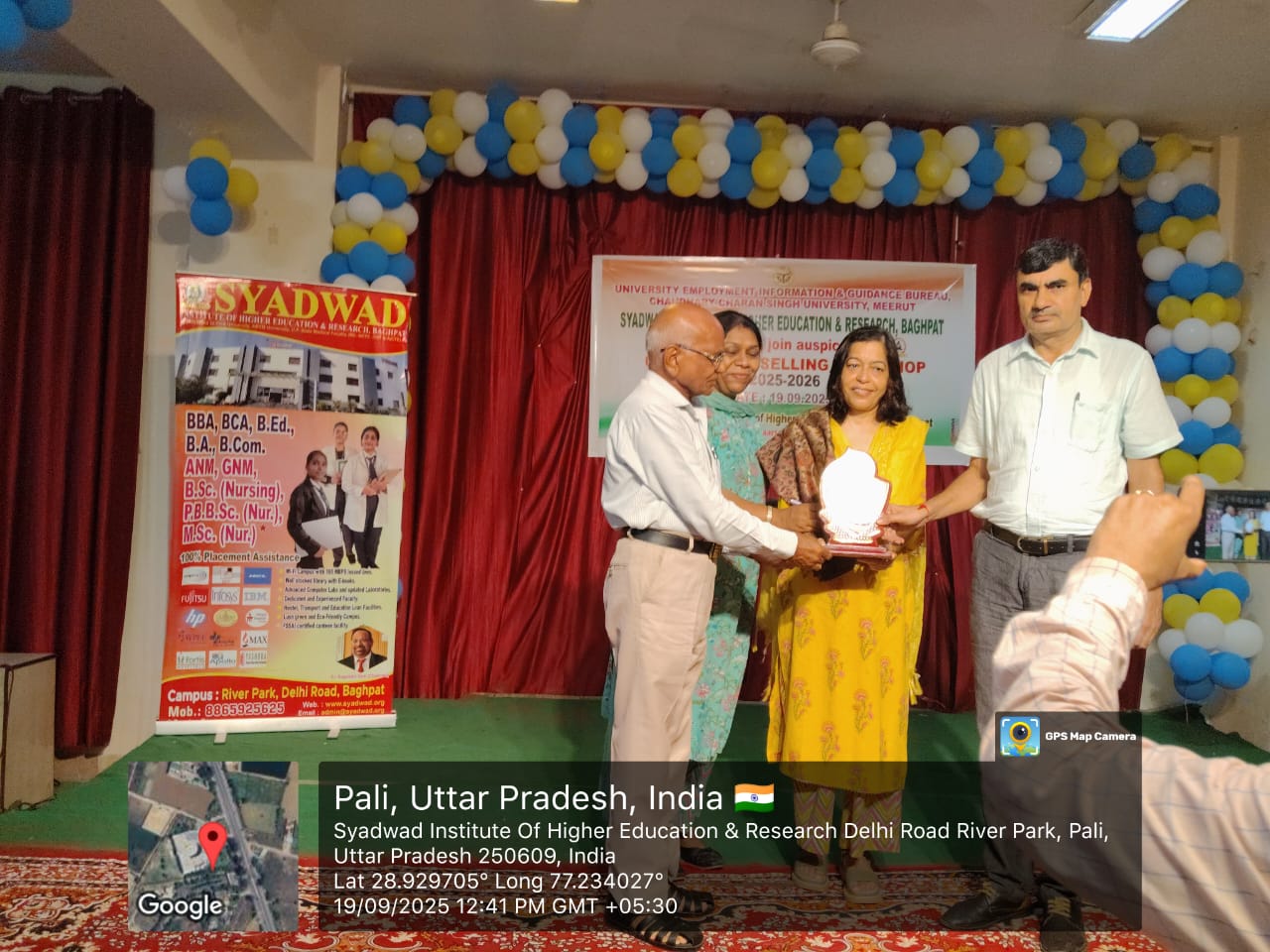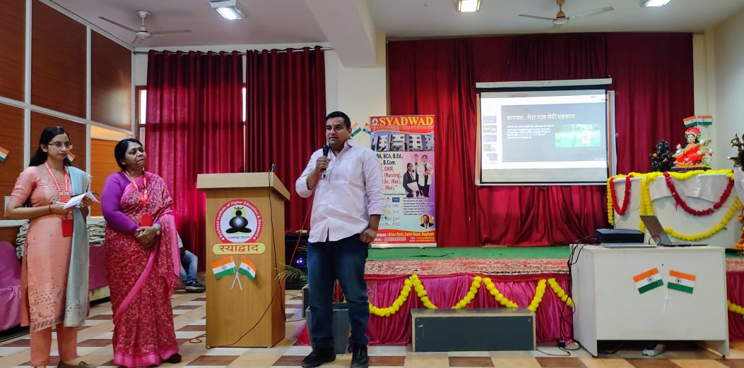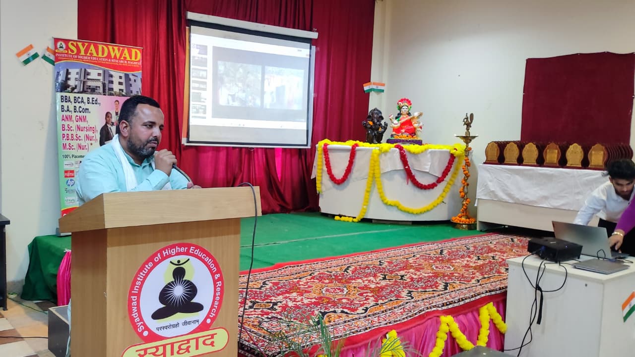 The Syadwad Institute of Higher Education and Research, River Park, Baghpat, organized a seminar on the topic “The Role of Public Representatives in Indigenous Production and Consumption” as part of the “Adopt Swadeshi, Make the Country Self-Reliant” campaign. Village heads from Baghpat district participated in the seminar. Through this seminar, all the village heads of Baghpat district shared information about the local products of their respective villages on a common platform. On this occasion, Assistant Professor Shafali Goyal of the institute also launched a website for the village heads of the district, which includes details of the work done by the village heads as well as information about the cultural heritage of Baghpat district.