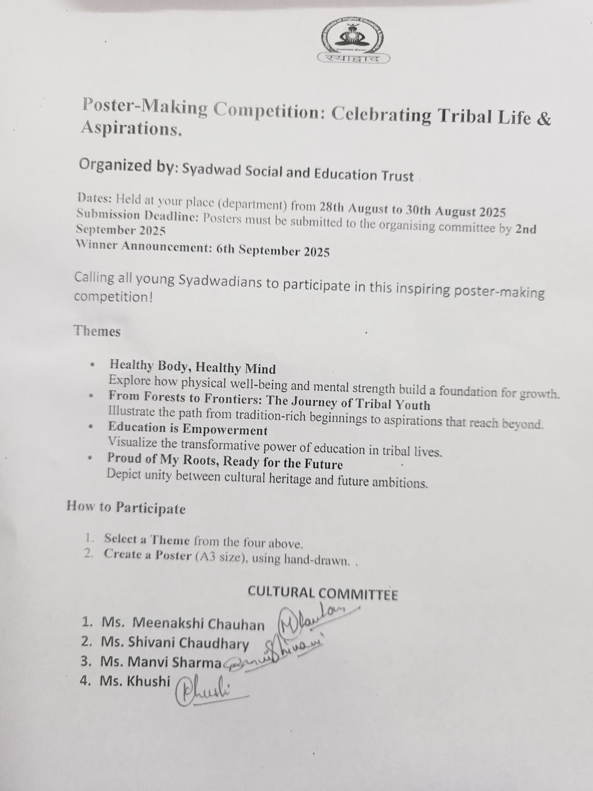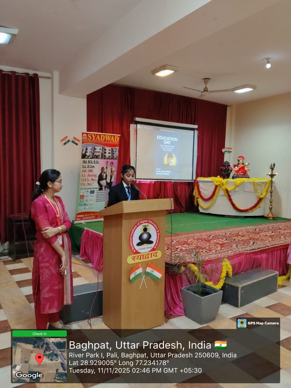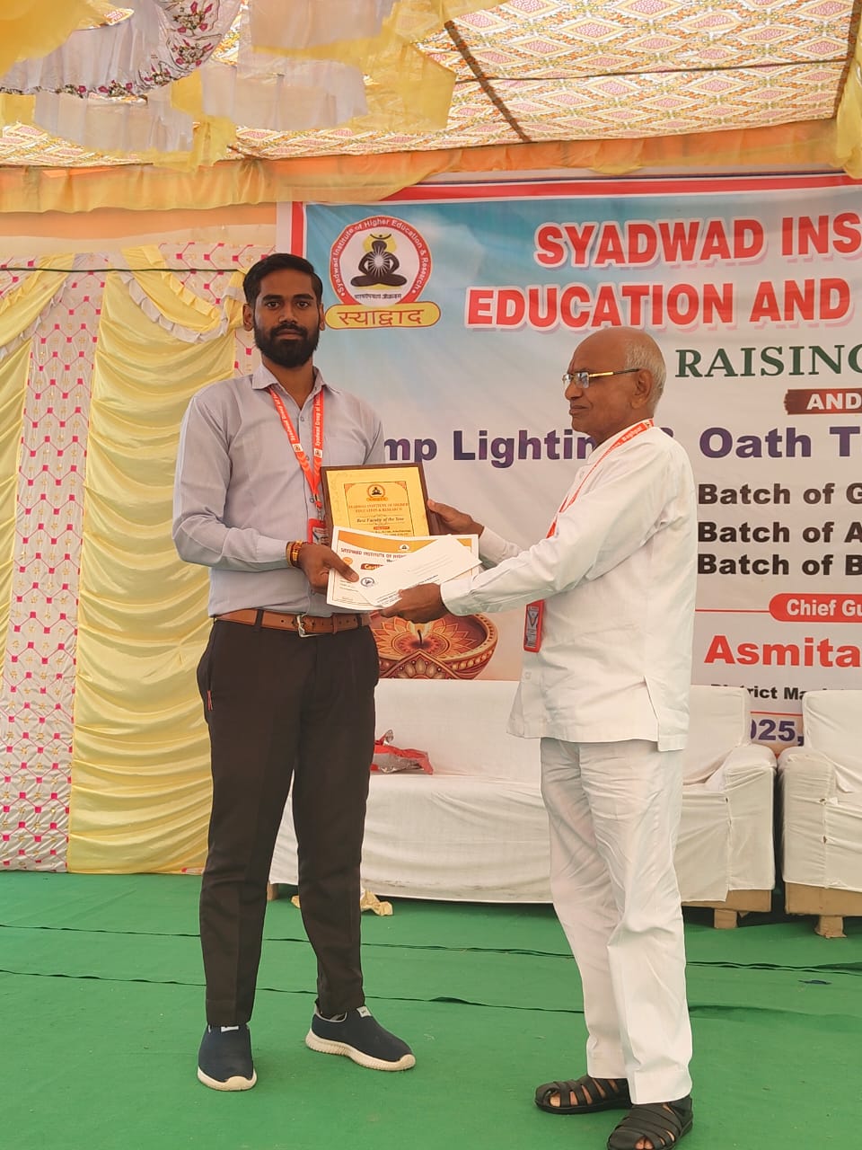 Syadwad Institute of Higher Education celebrated Innovation Day on 15 October 2025, marked by an engaging Speech Competition that encouraged students to express their ideas on innovation and future possibilities. Participants delivered inspiring speeches on emerging technologies, creative problem-solving, and the role of innovation in shaping tomorrow’s world. The event aimed to enhance students’ confidence, communication skills, and innovative thinking. Winners were awarded certificates, and all participants were appreciated for their enthusiastic involvement, making the celebration both meaningful and memorable.