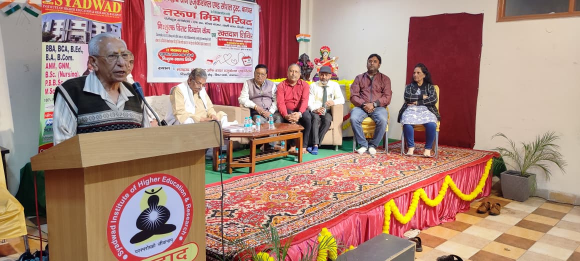 Syadwad Institute of Higher Education and Research organized a free health camp on 21 November 2025. The camp included specialized OPDs in Cardiology, Gynaecology, Ophthalmology, General Physician, Dental, Homeopathy, and Ayurveda, Physiotherapy. Blood tests were conducted, essential medicines were distributed free of cost, and prosthetic limbs were also provided to beneficiaries.
