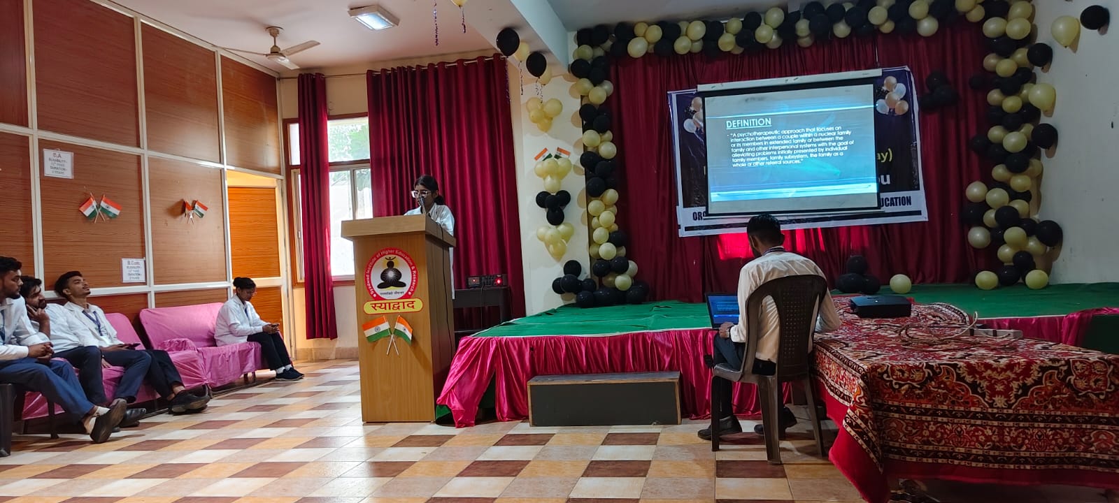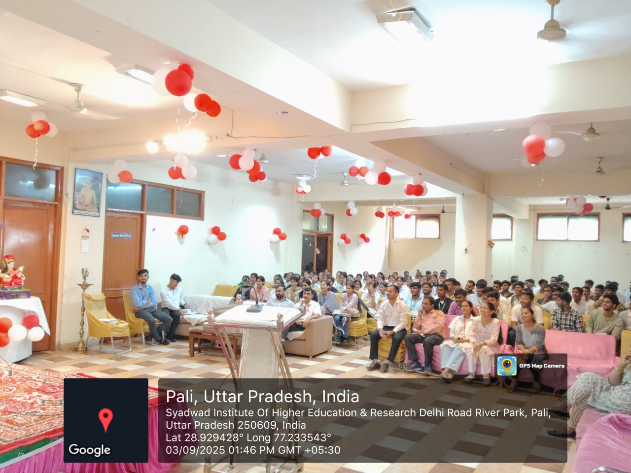 A seminar on Psychotherapy was organized on the occasion of World Stress Awareness Day at Syadwad institute of higher education and research baghpat. The session aimed to enhance understanding of stress management techniques and to highlight the role of psychotherapy in promoting mental well-being. The seminar provided valuable insights into various therapeutic approaches, coping strategies, and the importance of seeking timely psychological support. Participants actively engaged in the discussion and gained meaningful knowledge to apply in both personal and professional contexts.