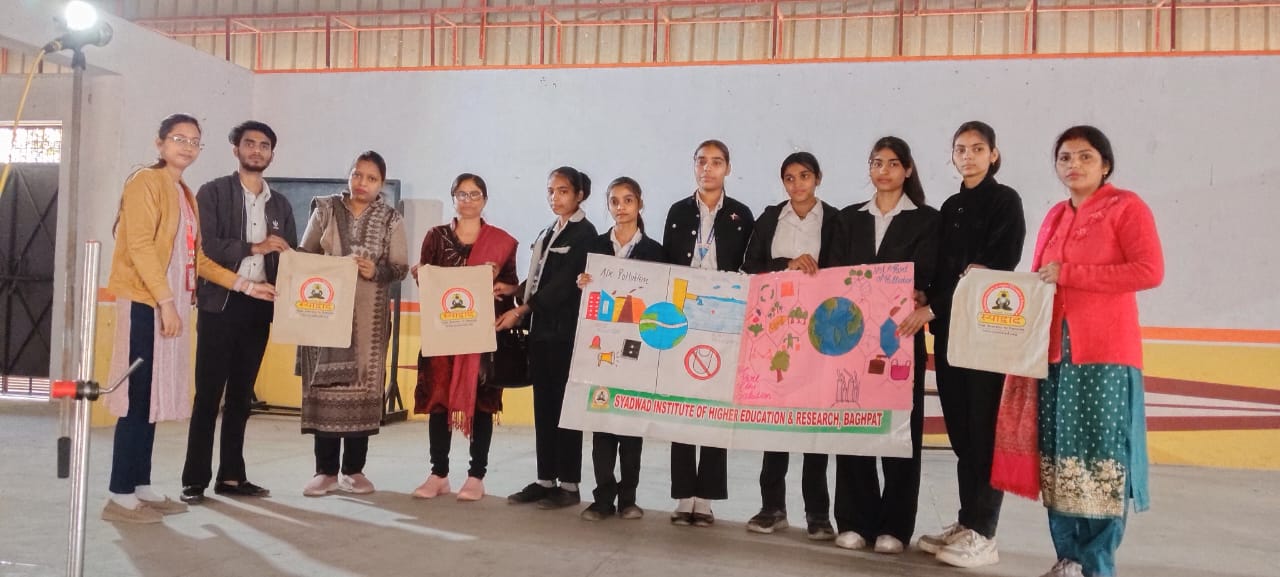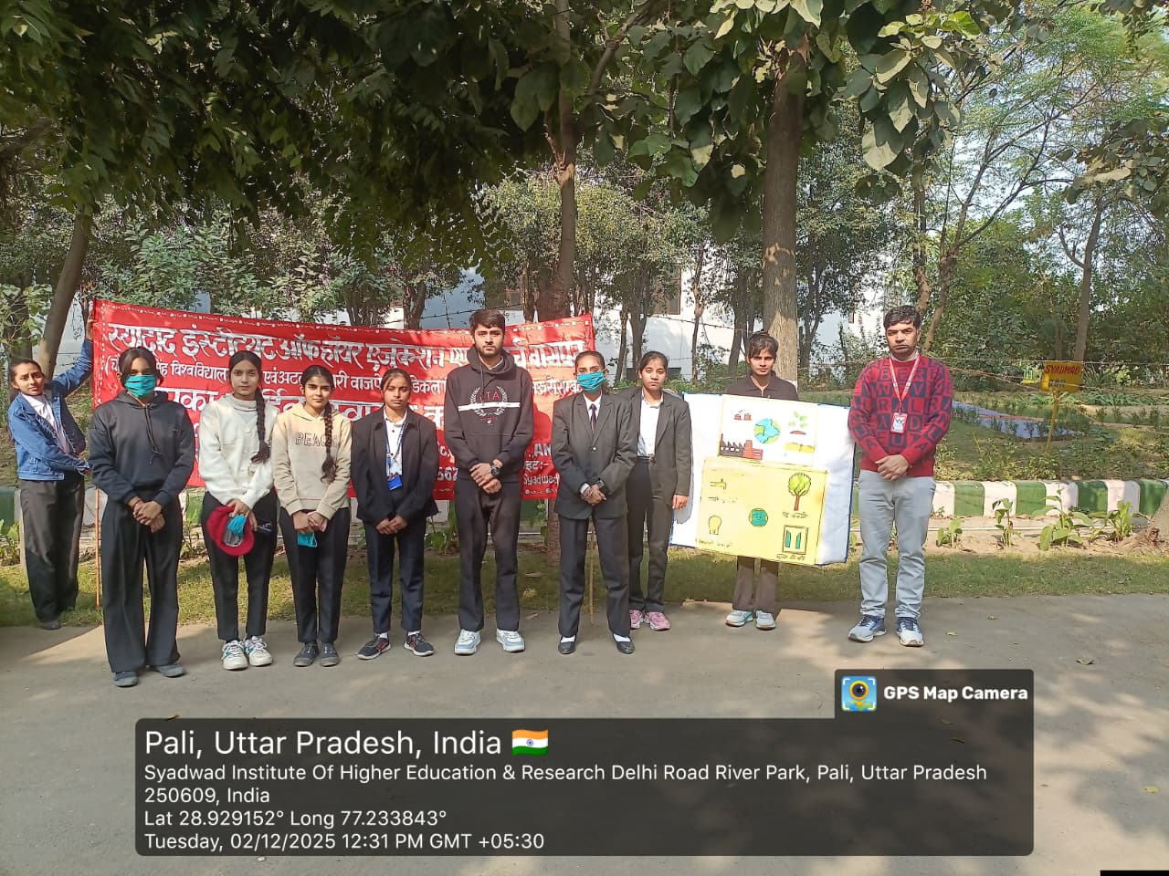 On 2nd December 2025, Syadwad Institute of Higher Education & Research organized a community awareness program on the occasion of National Pollution Control Day. As part of the initiative, students performed an impactful street skit in Mavikalla and Tatiri, spreading awareness about the dangers of air, water, and environmental pollution and encouraging people to adopt preventive measures.The students also highlighted the importance of “No Plastic Use”, explaining the harmful effects of plastic on the environment and motivating the community to choose eco-friendly alternatives.To support this cause, cloth bags were distributed to local residents, promoting sustainable practices in daily life.This initiative reflects the institute’s strong commitment to social responsibility and its dedication to creating a cleaner and greener future.
